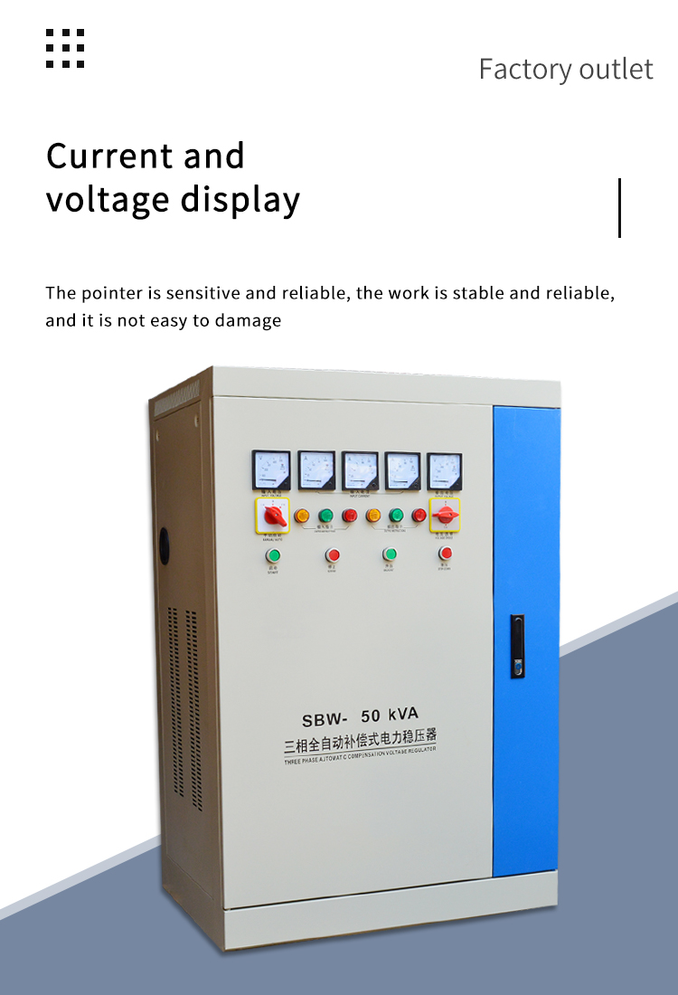 SBW-350KVA 3 상 자동 보정 유형 전력 스태빌라이저를 소개합니다. 이 고급 스태빌라이저는 자동으로 전압 변동을 보상하고, 감지 장비를 손상으로부터 보호하고 최적의 운영 성능을 유지합니다.